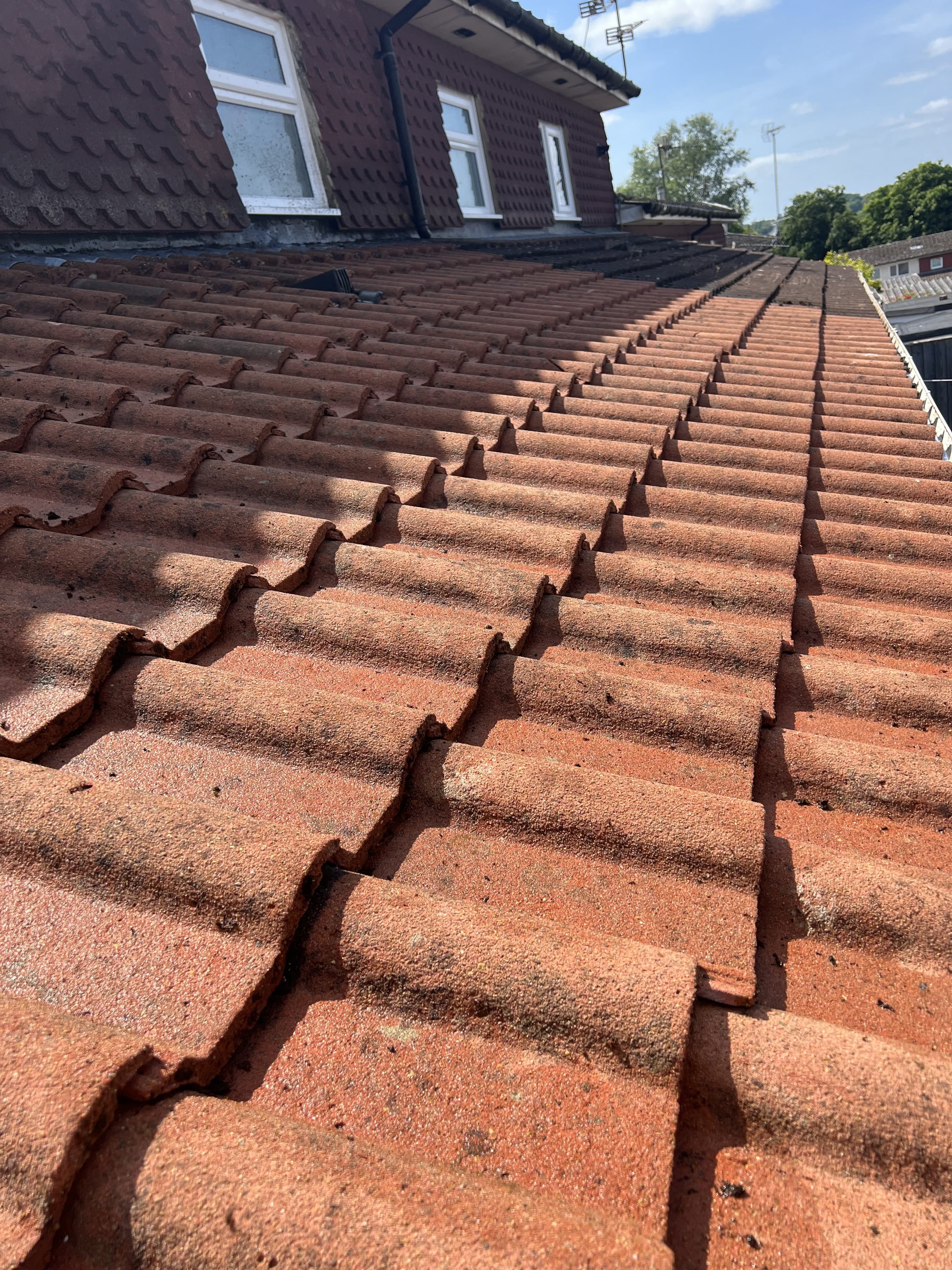 Roof cleaning can be a useful part of household maintenance you can take which helps to prevent issues developing in the future. Removing moss from the roof tiles prevents a build up of moss that can fall down from the roof tile into the gutters hindering the removal of rain water from the guttering and potentially blocking downpipes. This leads to problems like damp coming through the walls of the house.